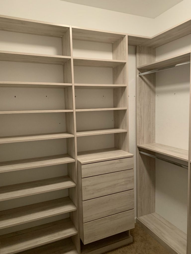 Whether you have a walk-in closet in the master bedroom, a children’s closet or a luxurious dressing room, we will work with you to discover your unique wants and needs, style preferences and budget requirements